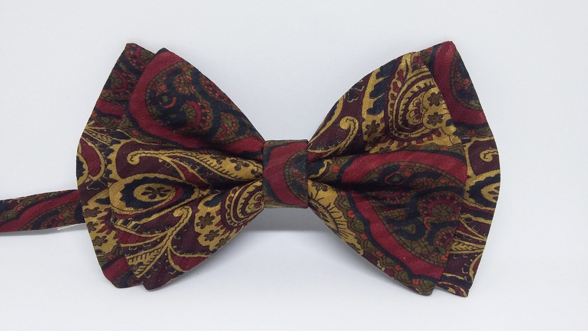Pajarita de seda burdeos y dorada, estampada con cachemir