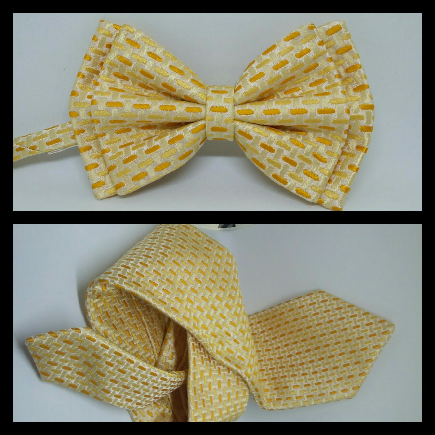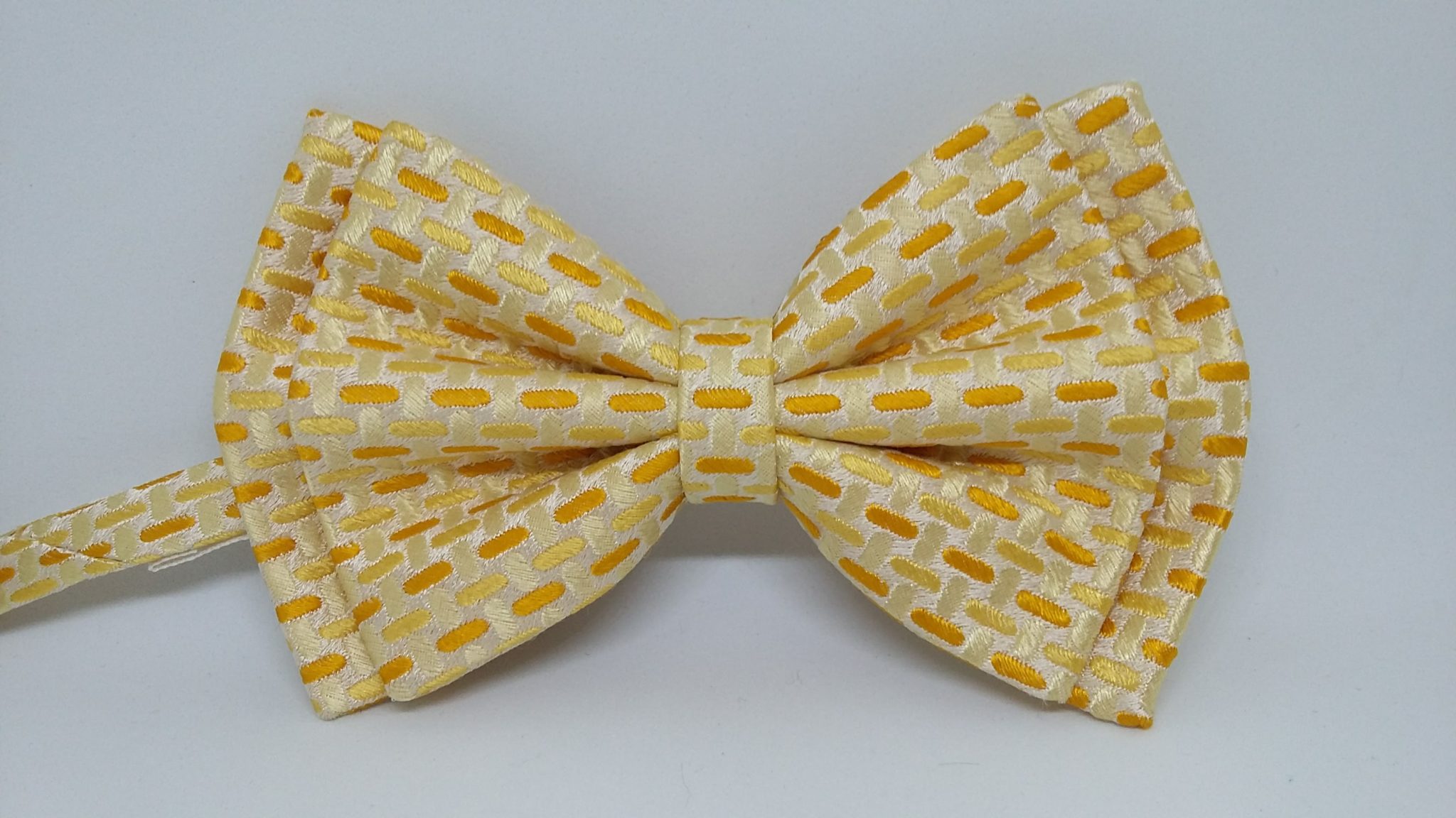Pajarita de seda crema con formas geométricas en tonos amarillos y naranjas